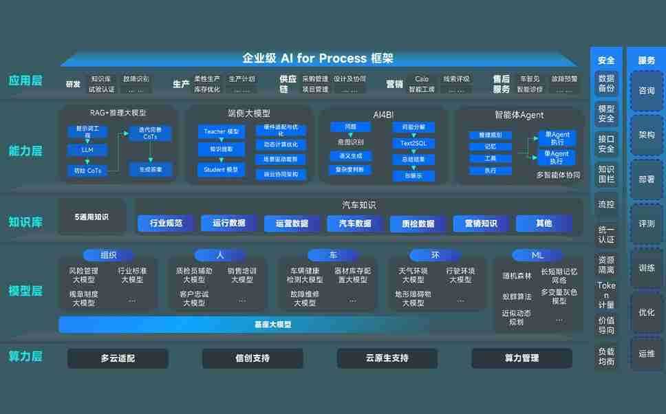 端到端的一站式AI工作空间深度融合了从企业战略规划到日常经营的全流程业务板块,,定向解决车企内部领域多、、、部门多、、、链条长、、场景碎片化等难题,,支持车企快速构建以AI为核心的生产力写作体系,,,,实现任务执行与AI能力的无缝集成与交互